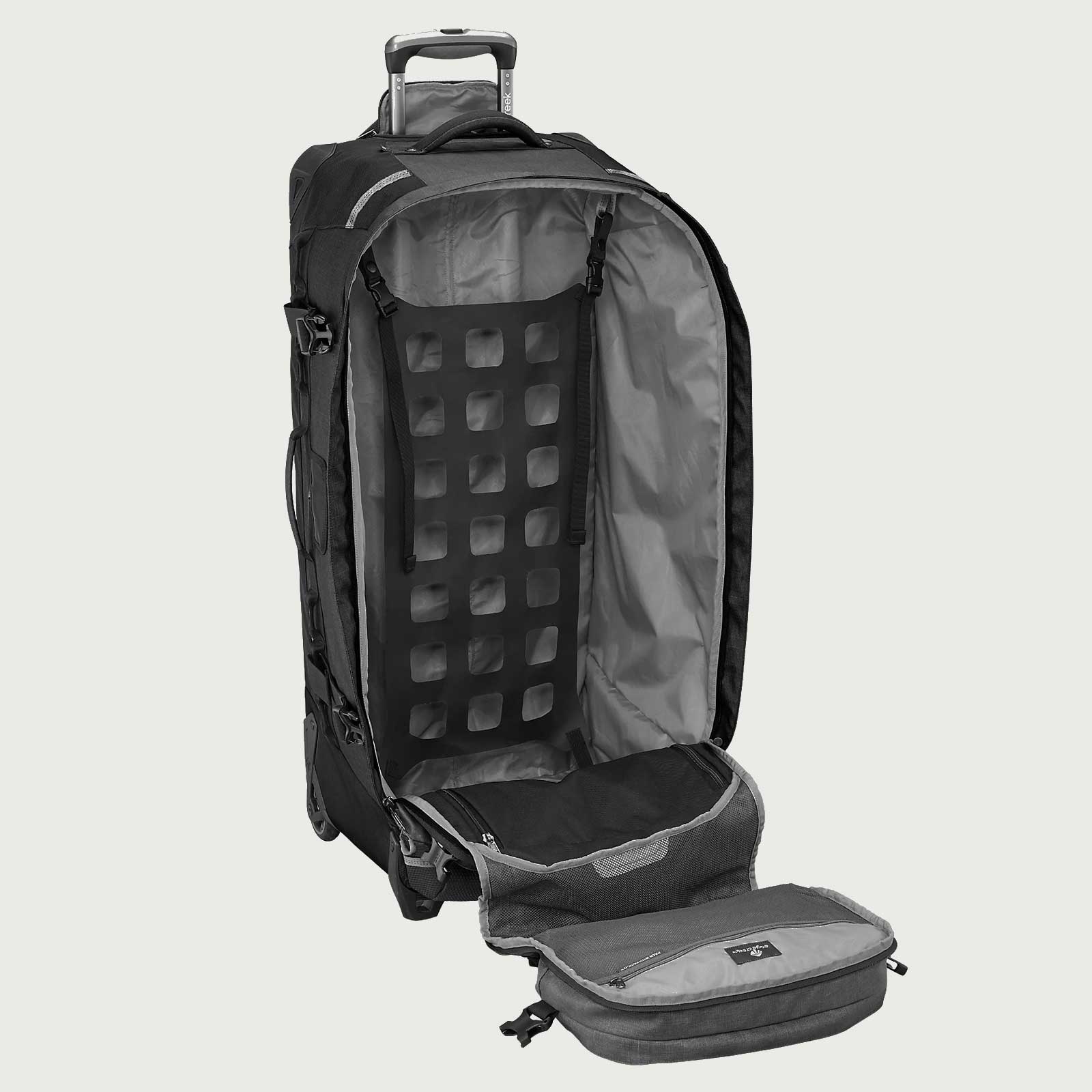 ・内部圧縮または外部に取り付け出来るCargo Net™