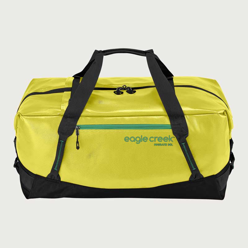 Migrate Duffel 90Lは口が大きく開き、耐水性のある素材で出来ていて、どこにでも必要なものすべてを持っていくことができるタフなダッフルバッグです。長期のトラベルに最適なサイズでタックアウェイ・バックパックストラップが装備されいるので、背負う事も可能です。
