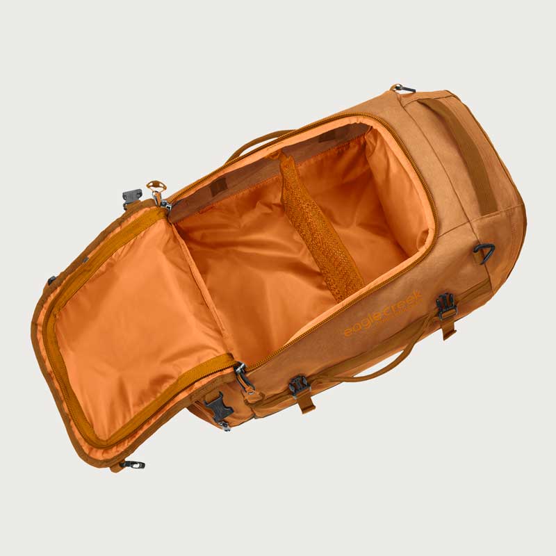 非常に軽量で丈夫で折り畳みのできるダッフルバッグです。グラブハンドル、パッド入りトップホールハンドル、収納可能なバックパックストラップによって、3Wayで持ち運ぶ事ができます。U字型の開口部でメインコンパートメントに簡単にアクセスできます。