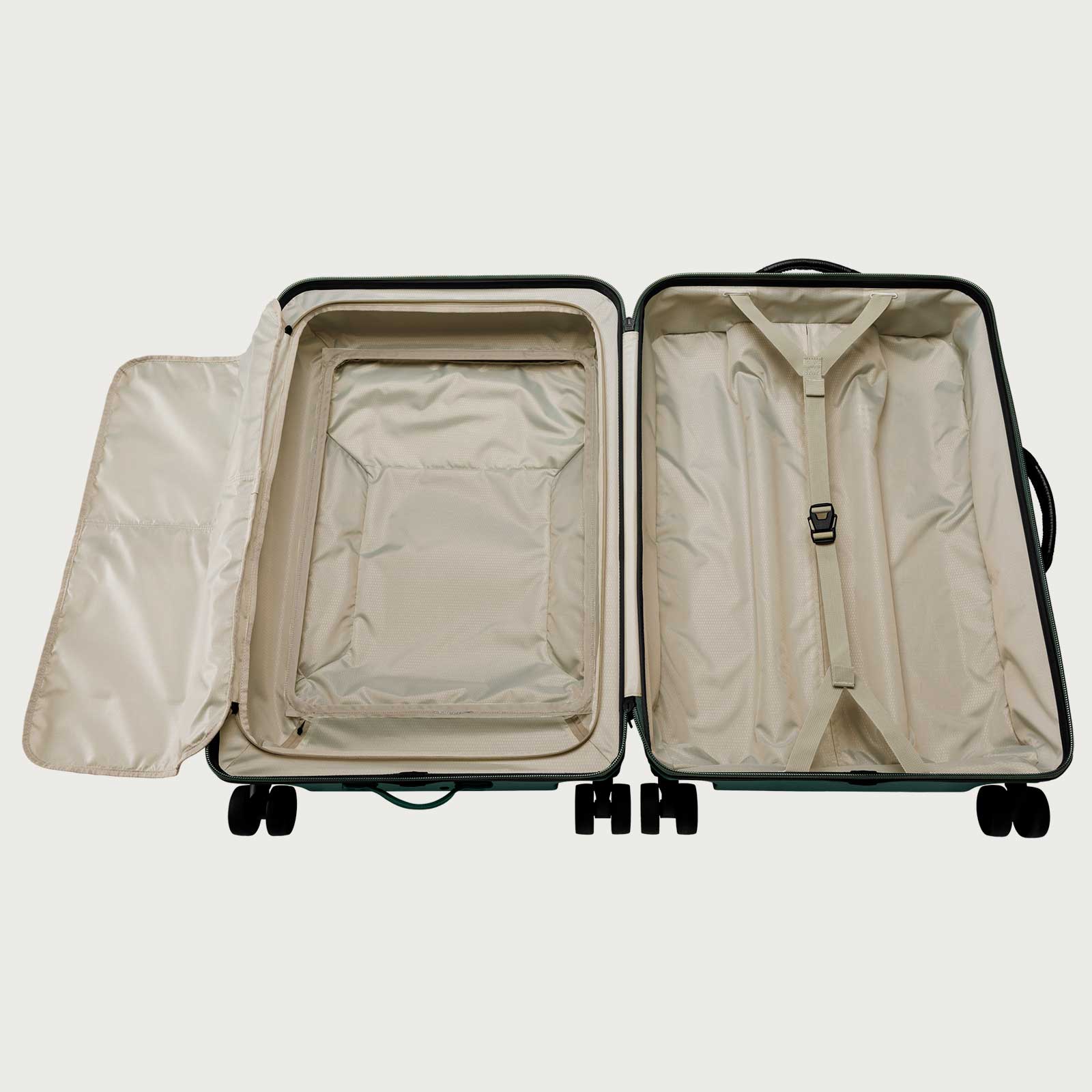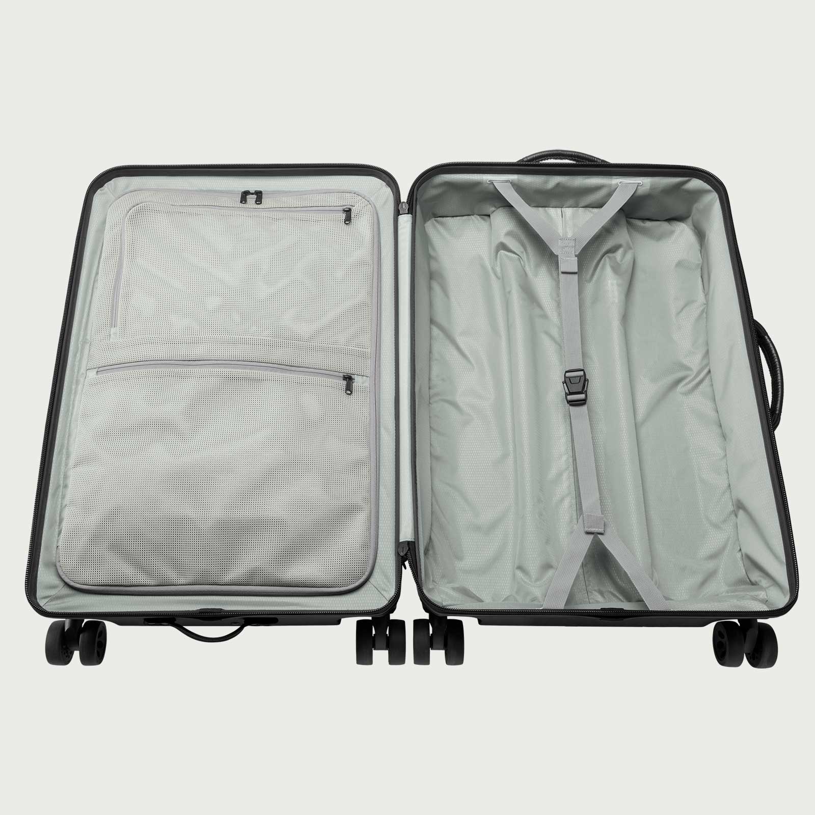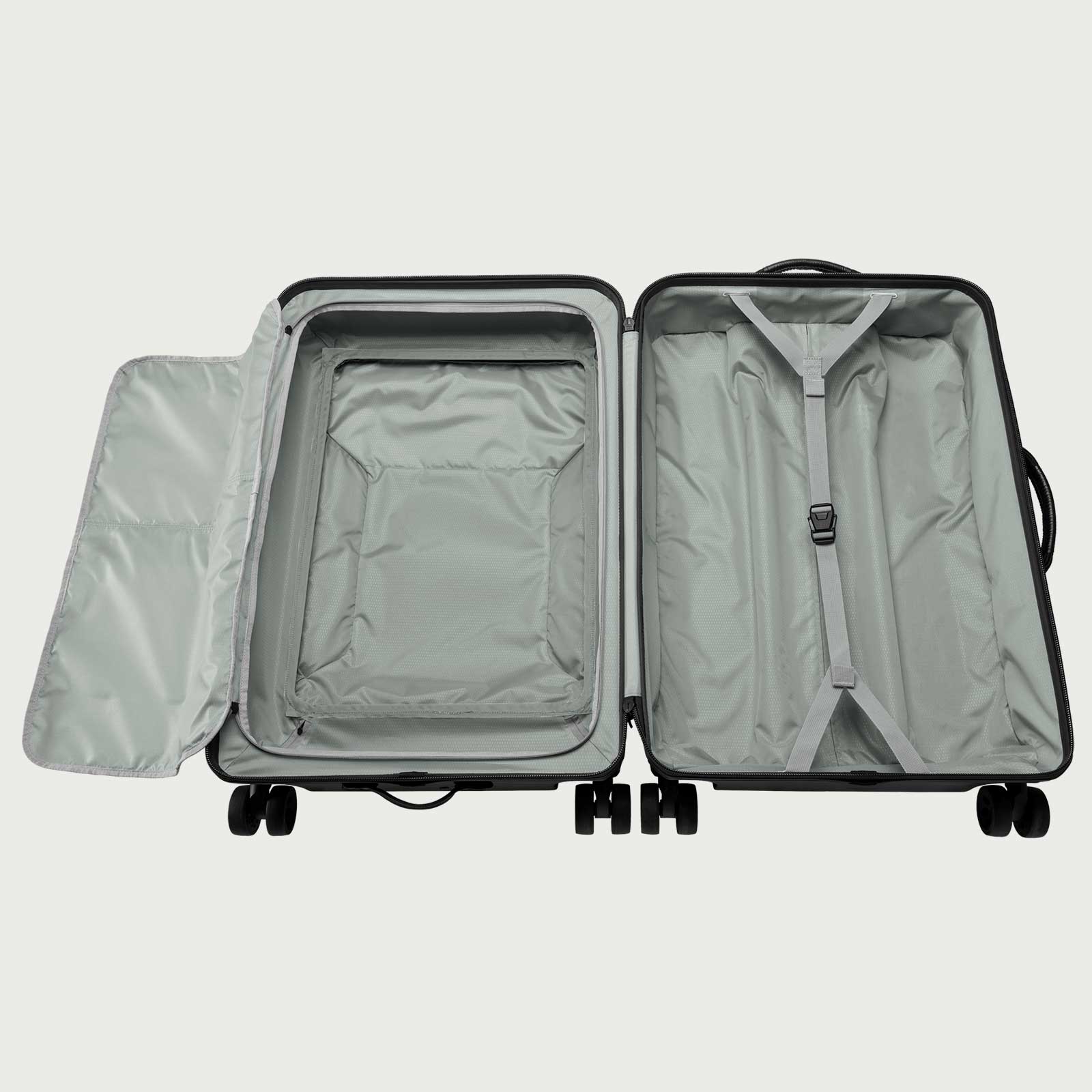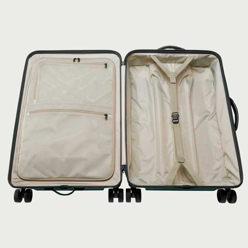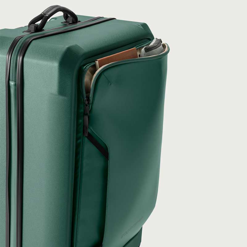 このバッグは、ハードシェルスーツケースの頑丈さとソフトシェルローラーバッグの使いやすさを融合させており、大切な荷物をしっかり保護しながらも、簡単にアクセスして整理することができます。