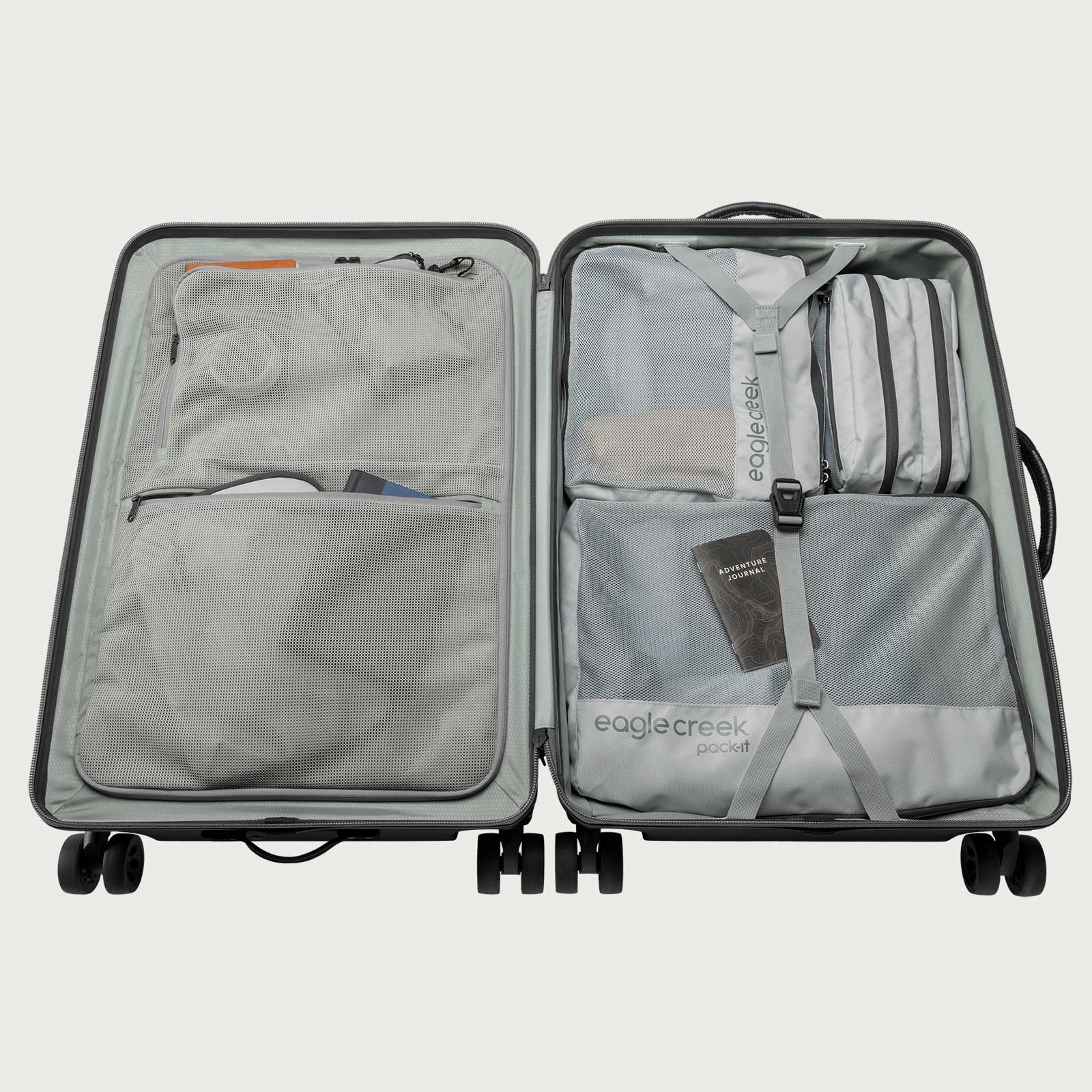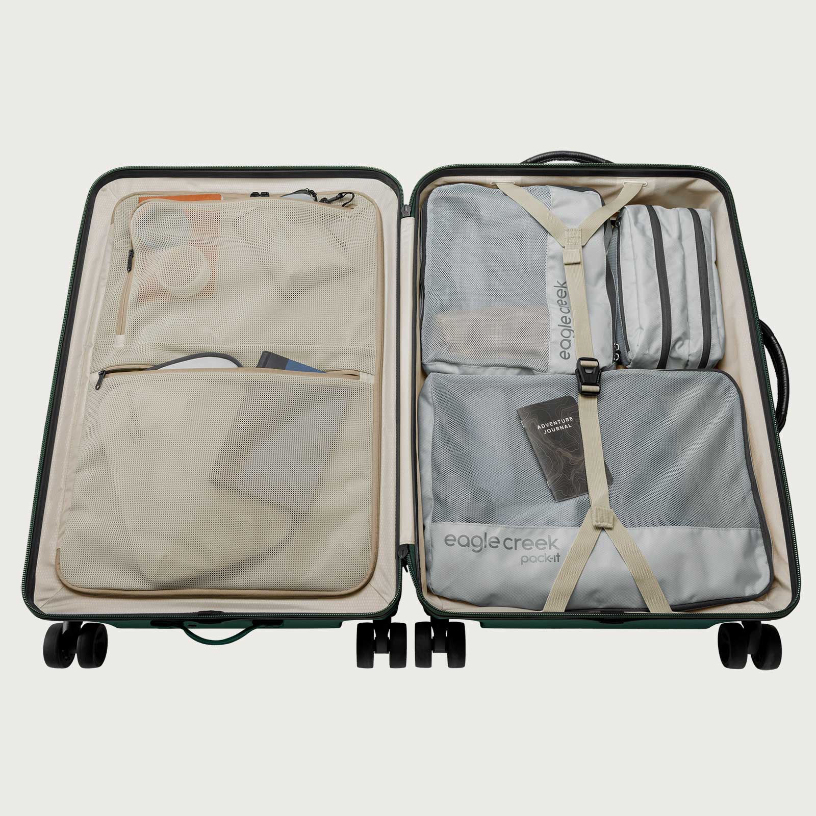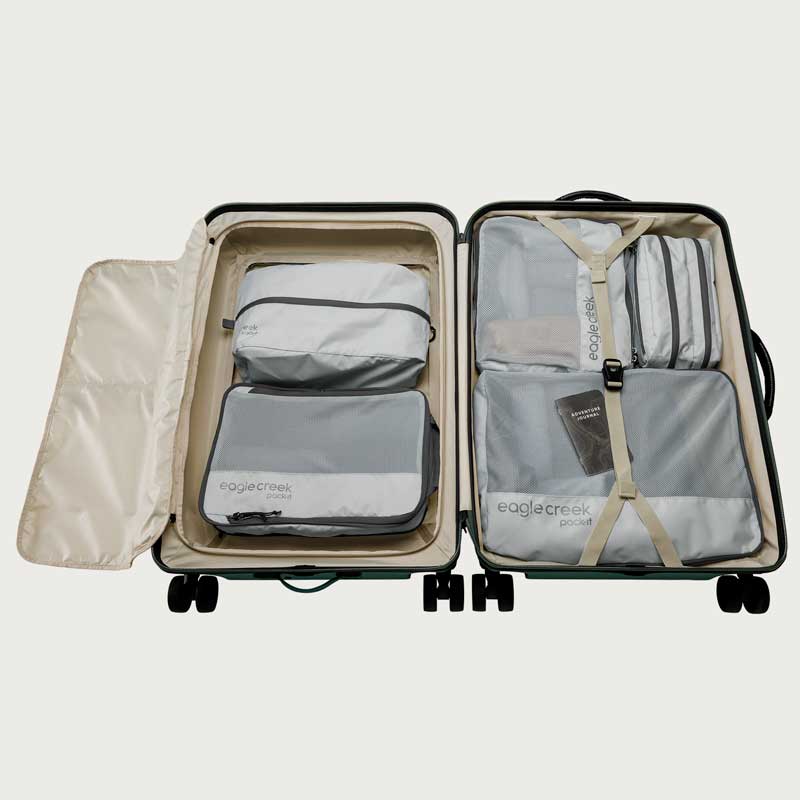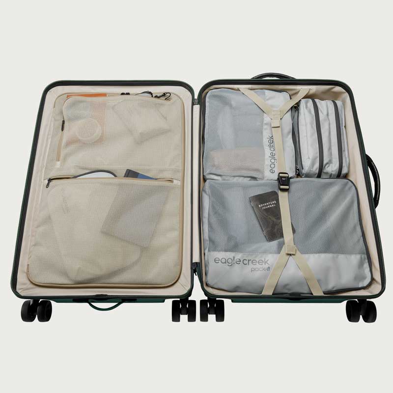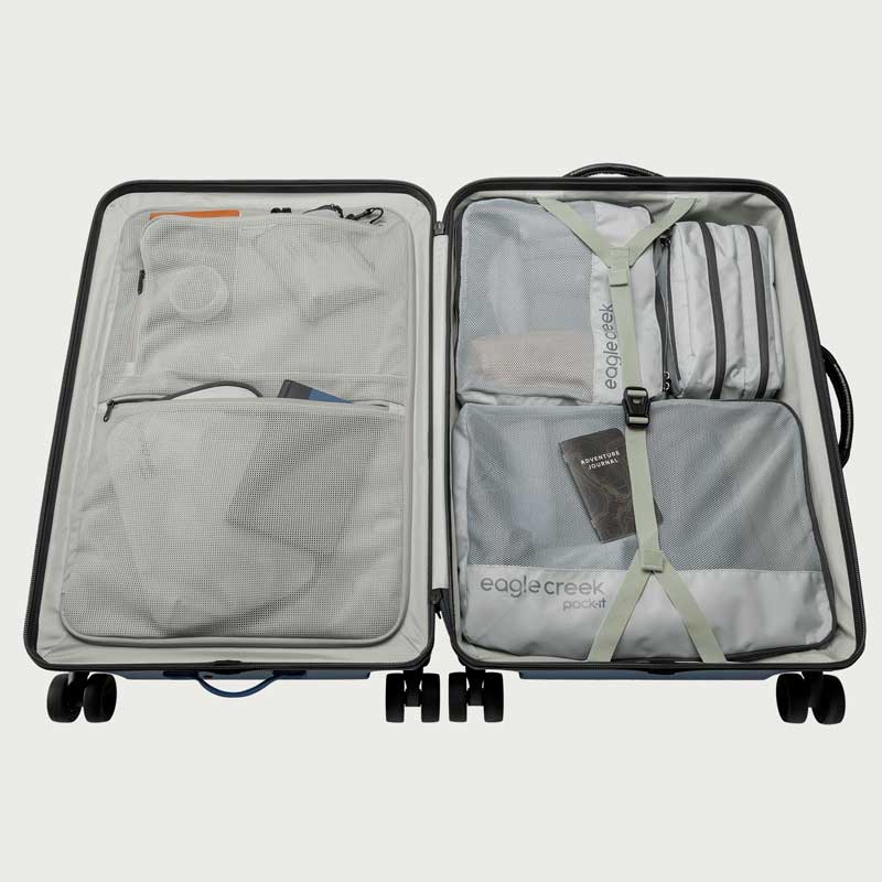 また、ShatterResist™ポリカーボネートシェルを採用しており、Eagle Creekらしいサステナブルかつ丈夫な構造を実現しています。さらに、素早く滑らかに動くスムーズロールホイールと伸縮式ハンドルにより、スタイリッシュに旅を楽しめます。
