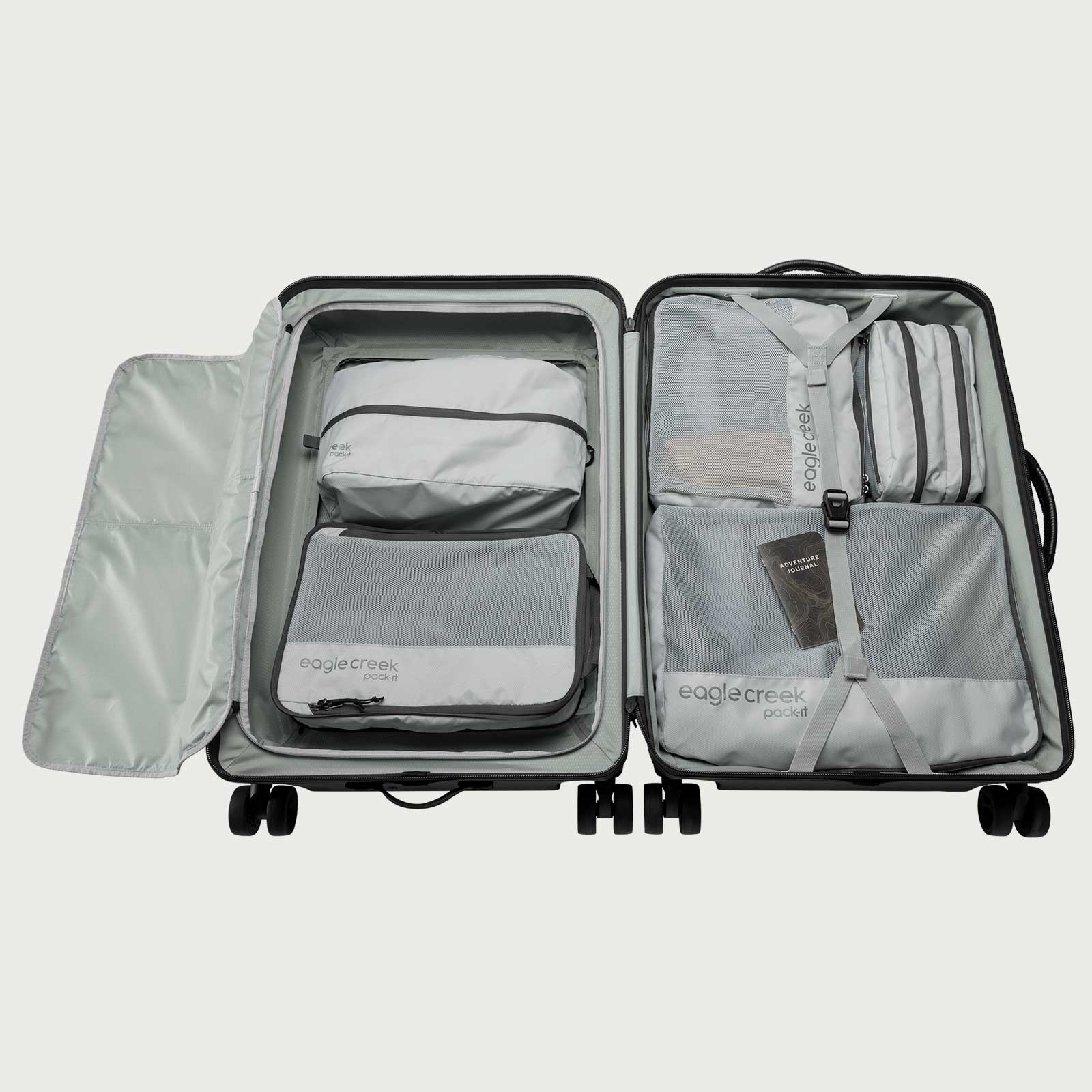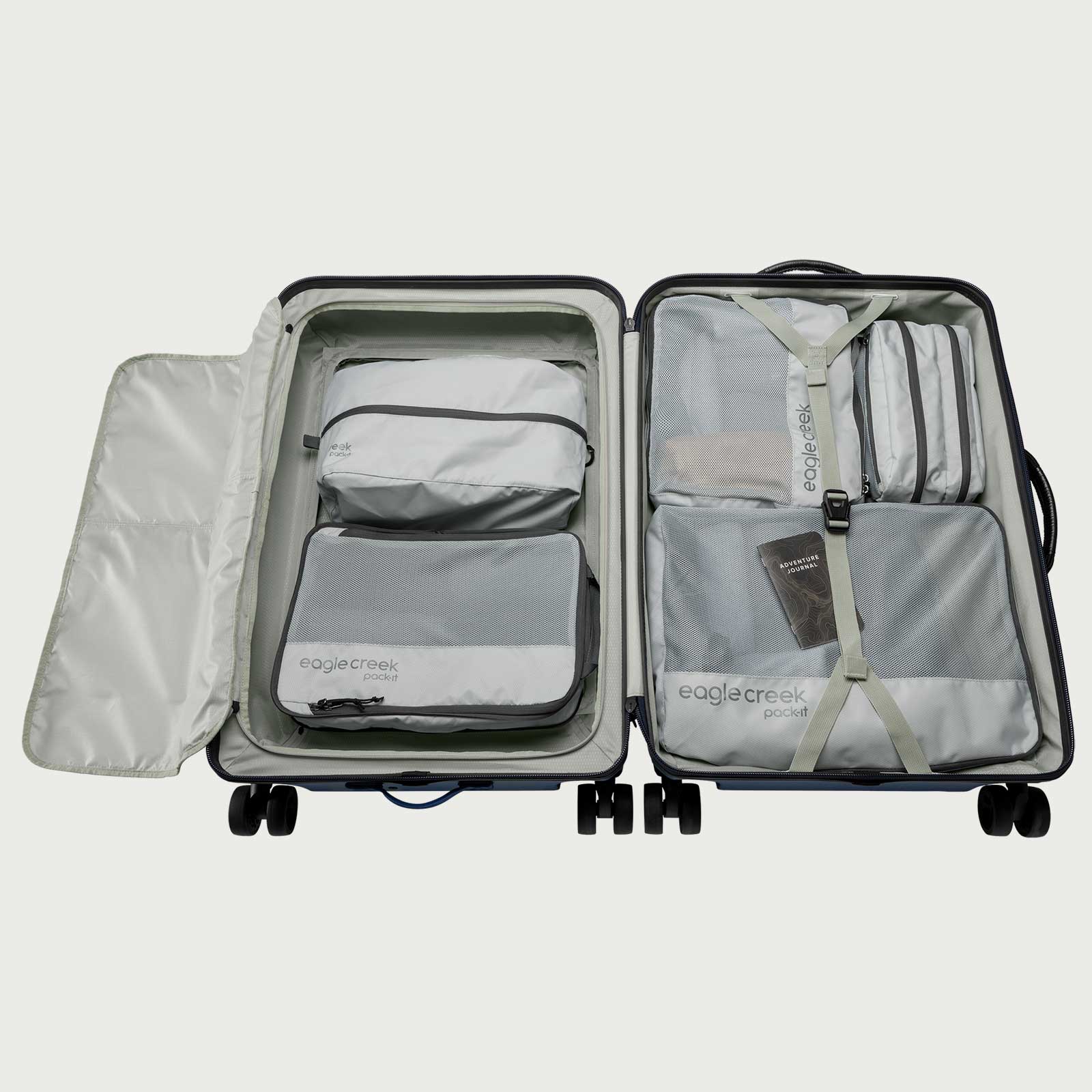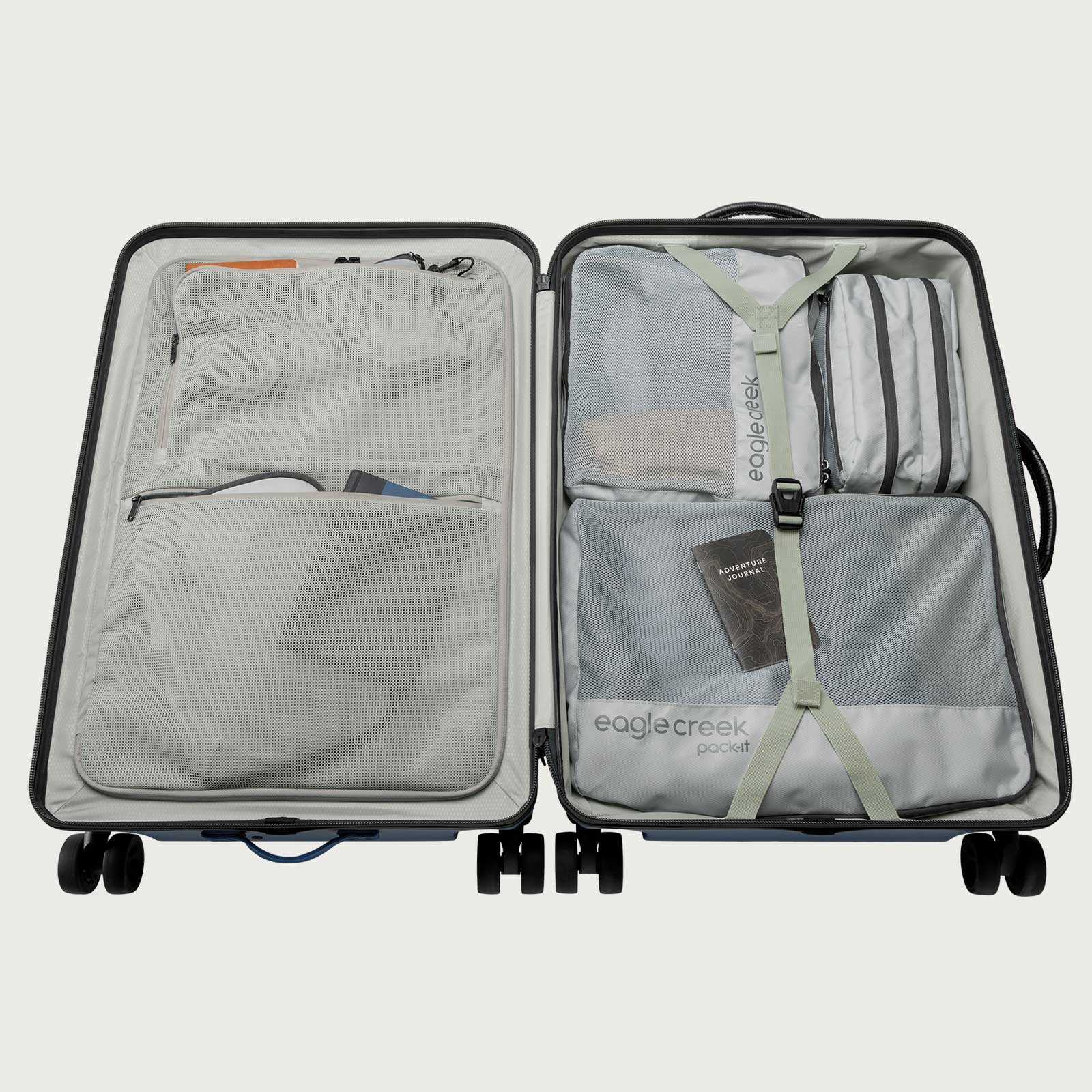 また、ShatterResist™ポリカーボネートシェルを採用しており、Eagle Creekらしいサステナブルかつ丈夫な構造を実現しています。さらに、素早く滑らかに動くスムーズロールホイールと伸縮式ハンドルにより、スタイリッシュに旅を楽しめます。