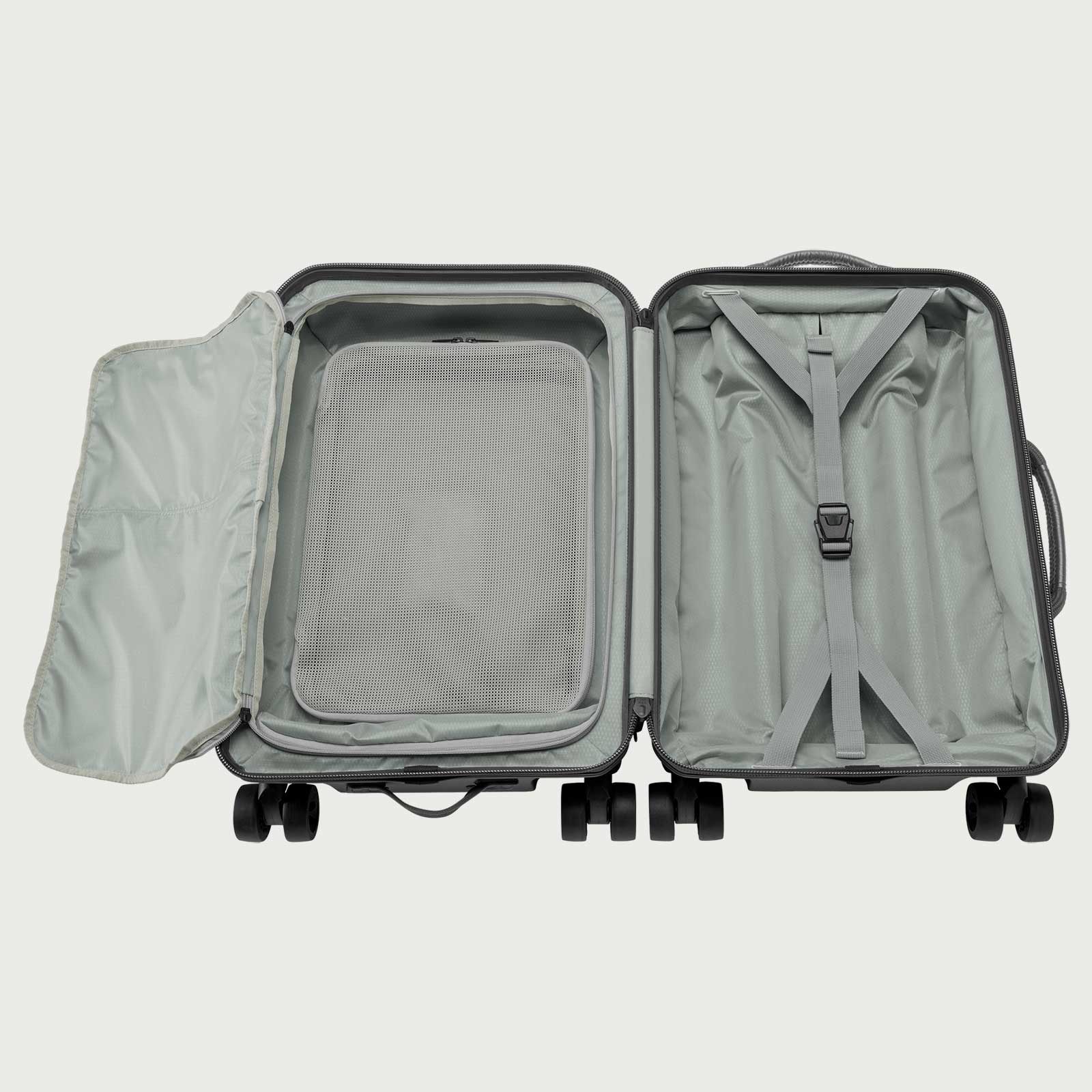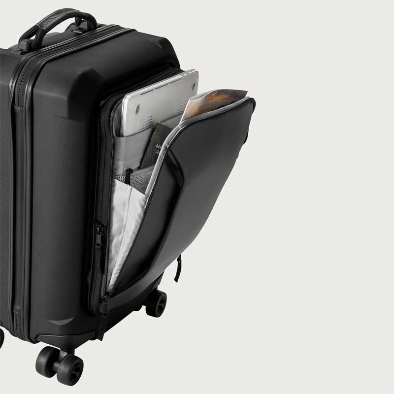 このキャリーオンバッグは、100%海洋リサイクルナイロン製のSlash Panelを前面に採用しており、専用の15インチラップトップスリーブへ簡単にアクセスできます。また、ShatterResist™ポリカーボネートシェルがもたらす洗練されたスタイルと、タフな耐久性も兼ね備えています。