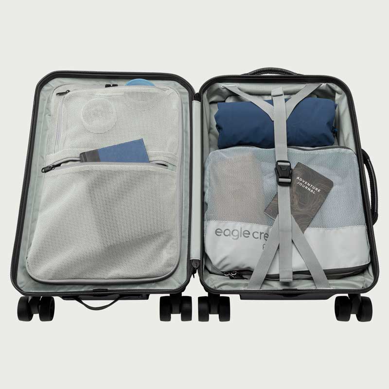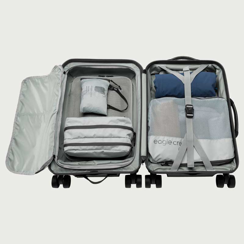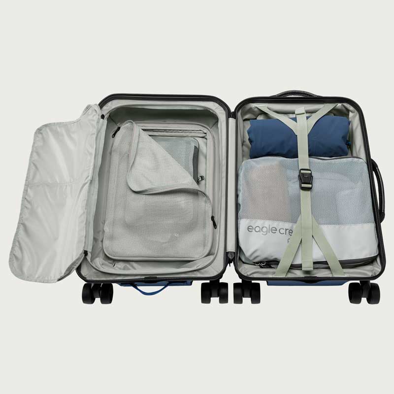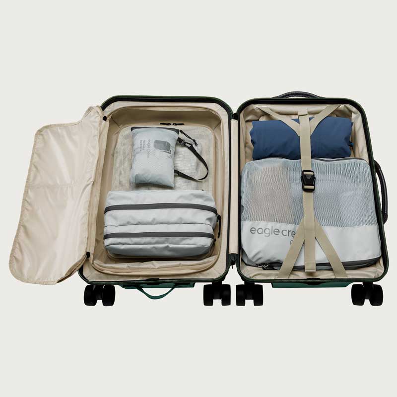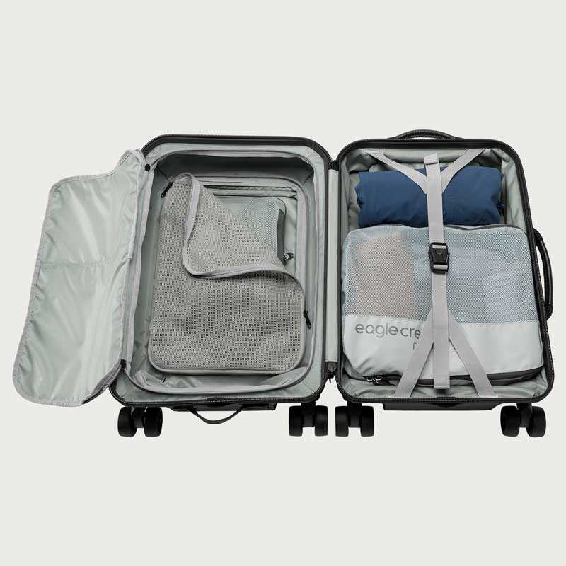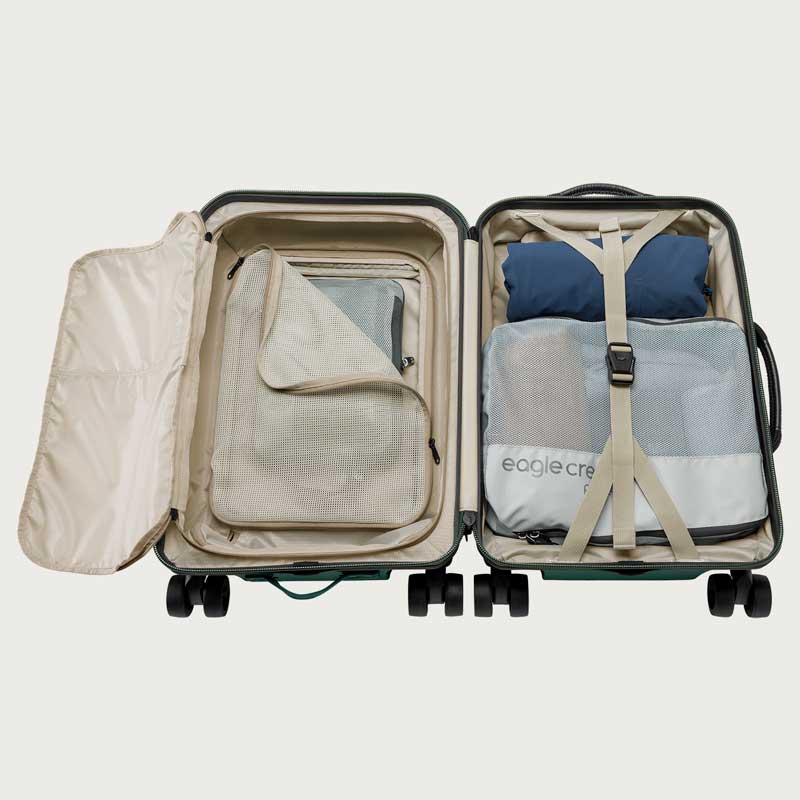 ハードシェルのスーツケースの頑丈さと、ソフトシェルローラーバッグの利便性を融合させ、大切な荷物をしっかり保護しながらも、出し入れしやすく整理しやすい設計を実現しました。