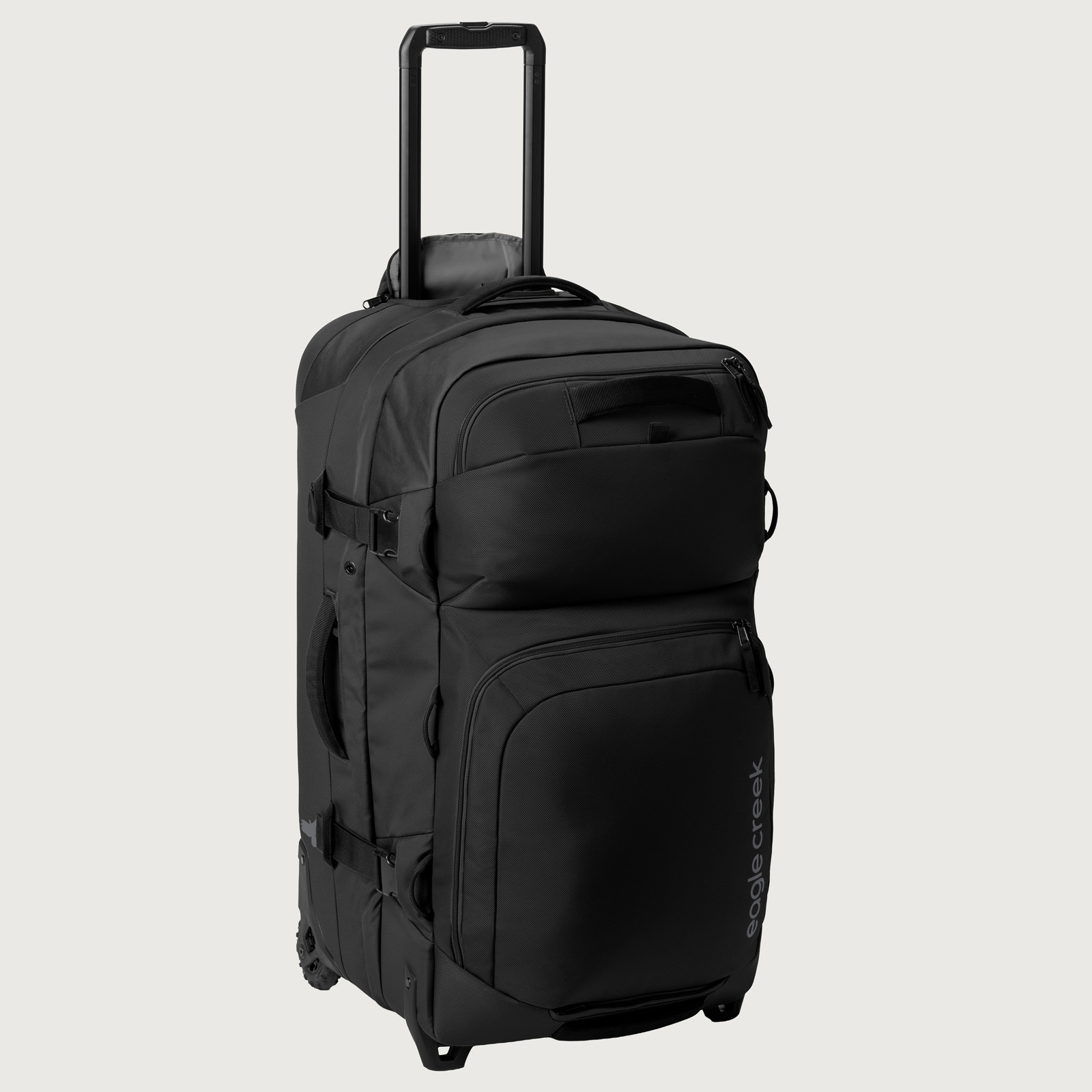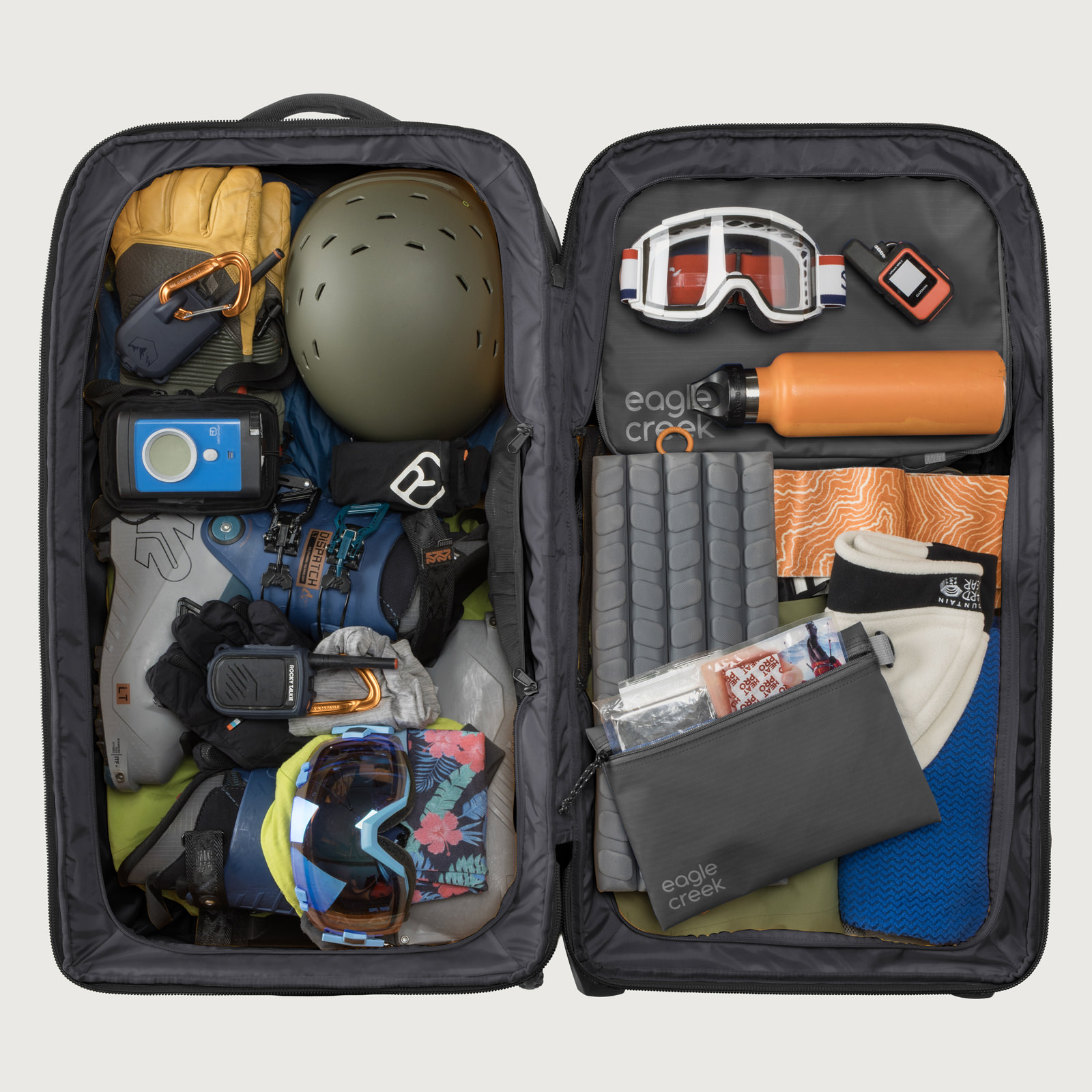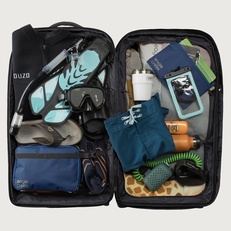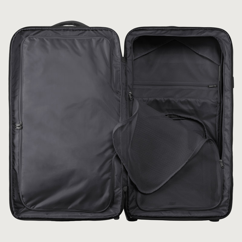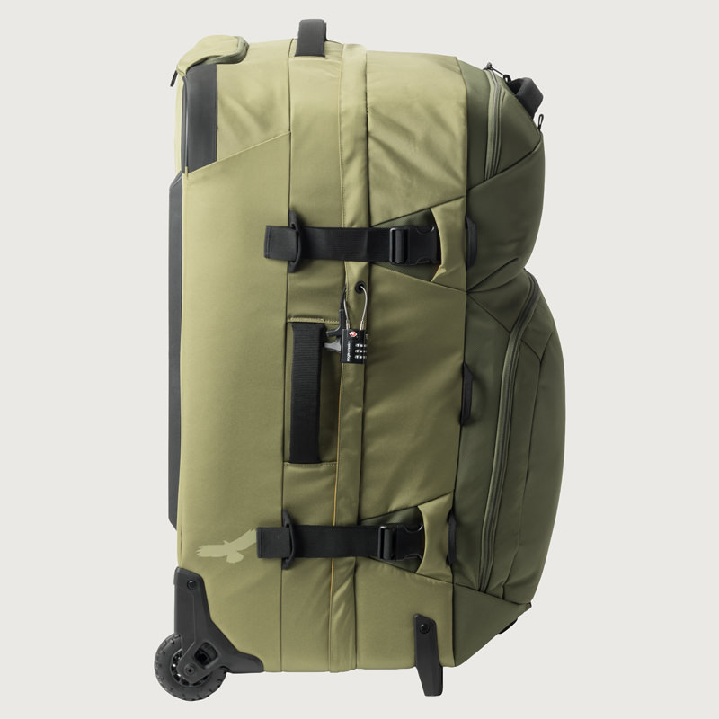 耐久性と機能性を極めたこのラゲージは、頑丈なフレーム構造と補強されたコーナー、高耐久性ホイールで過酷な旅に対応。クラムシェル型ジップアクセスでメイン収納に素早く、内部は3-in-1コンパートメントディバイダーや圧縮ストラップで整理可能です。ヘルメットなどを固定するカーゴネット、頑丈なハンドルや牽引ストラップ、外部コンプレッションも装備。ロック可能ジッパー、トラッカーポケットなど、旅の安心・快適を追求した設計です