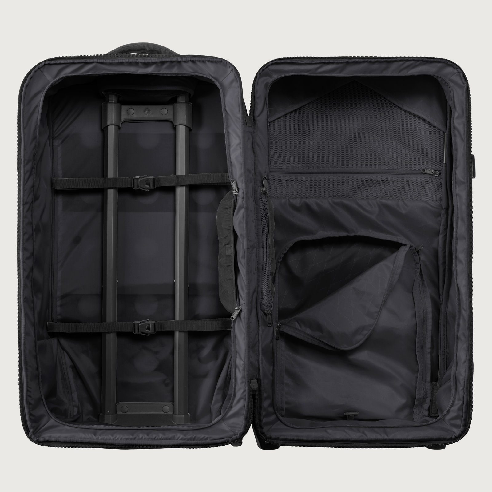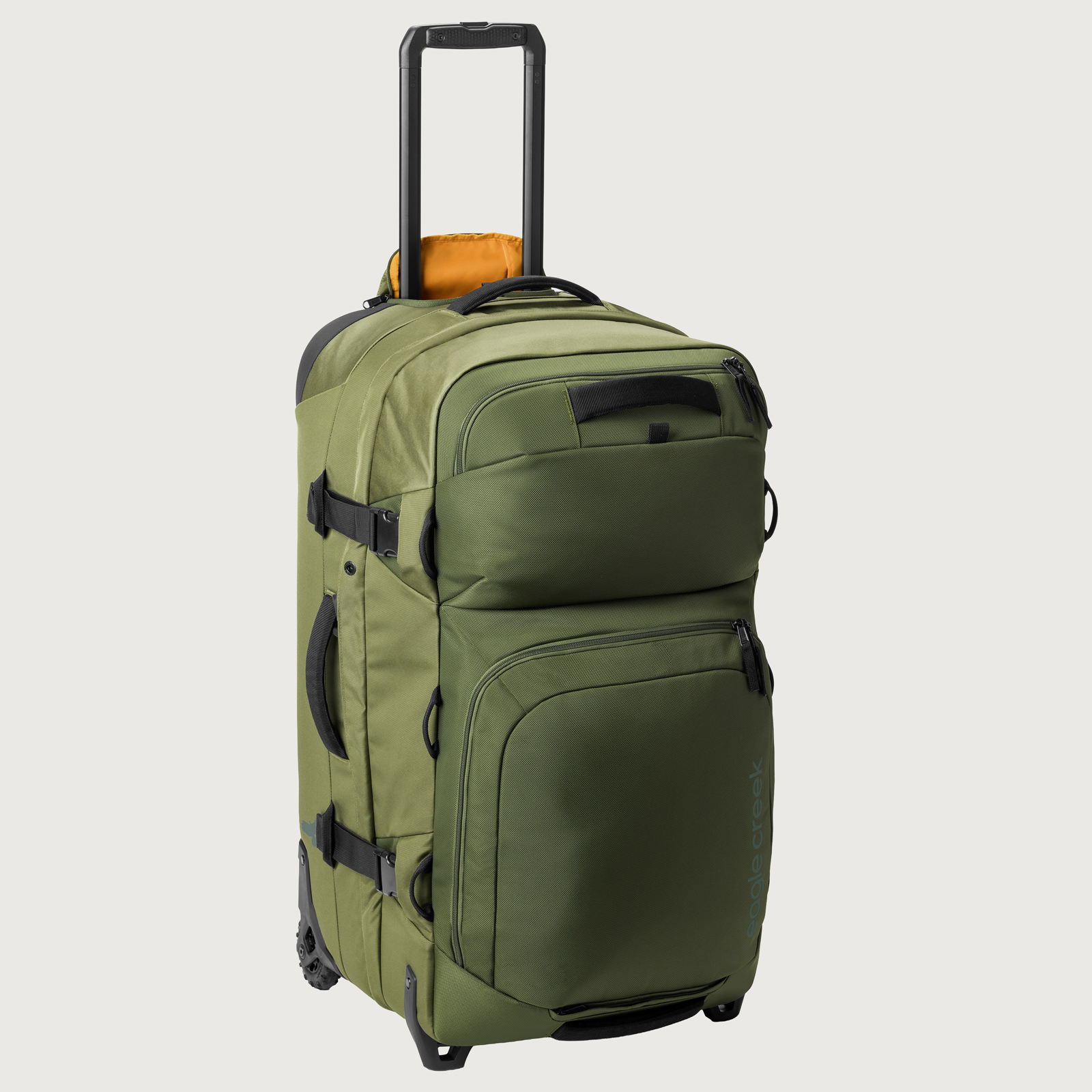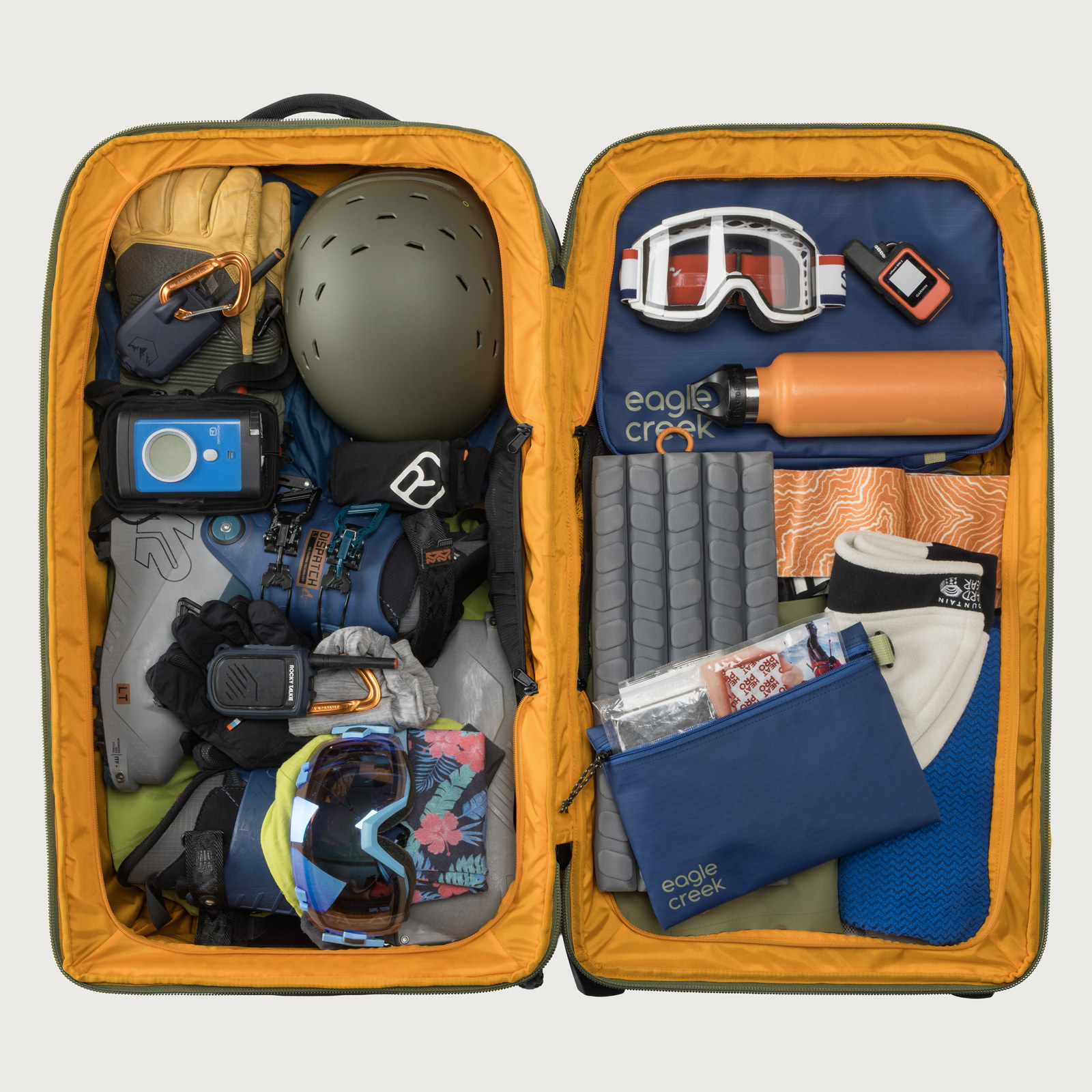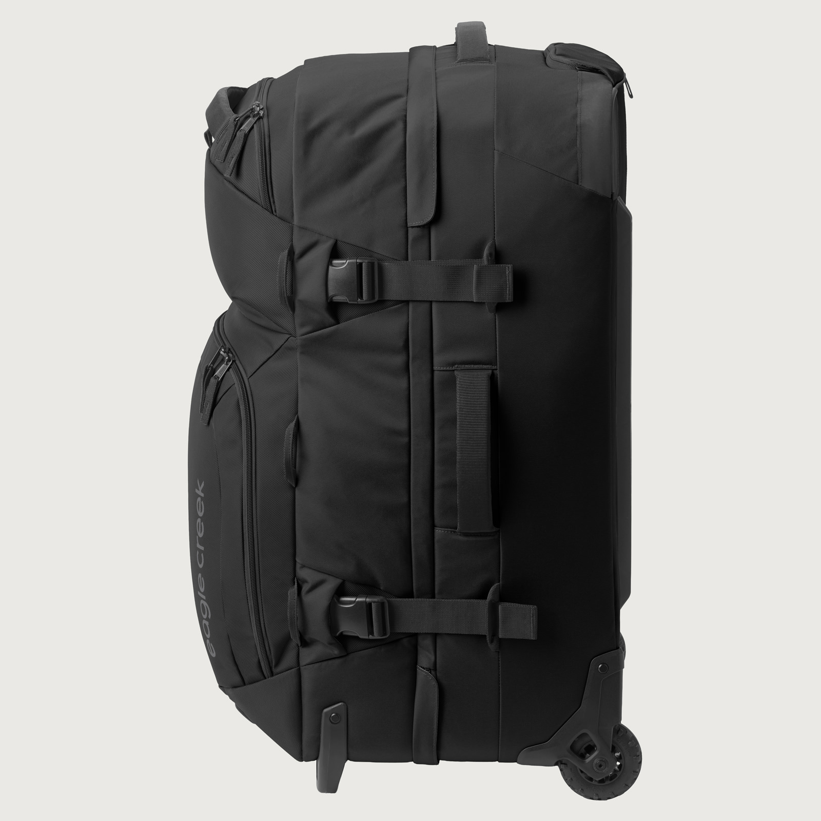 耐久性と機能性を極めたこのラゲージは、頑丈なフレーム構造と補強されたコーナー、高耐久性ホイールで過酷な旅に対応。クラムシェル型ジップアクセスでメイン収納に素早く、内部は3-in-1コンパートメントディバイダーや圧縮ストラップで整理可能です。ヘルメットなどを固定するカーゴネット、頑丈なハンドルや牽引ストラップ、外部コンプレッションも装備。ロック可能ジッパー、トラッカーポケットなど、旅の安心・快適を追求した設計です