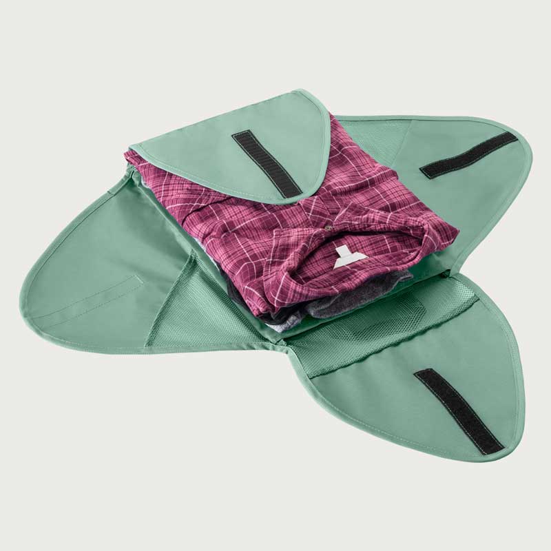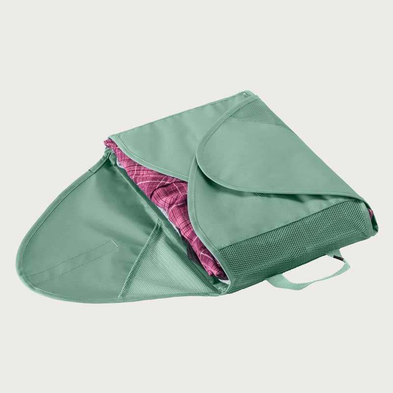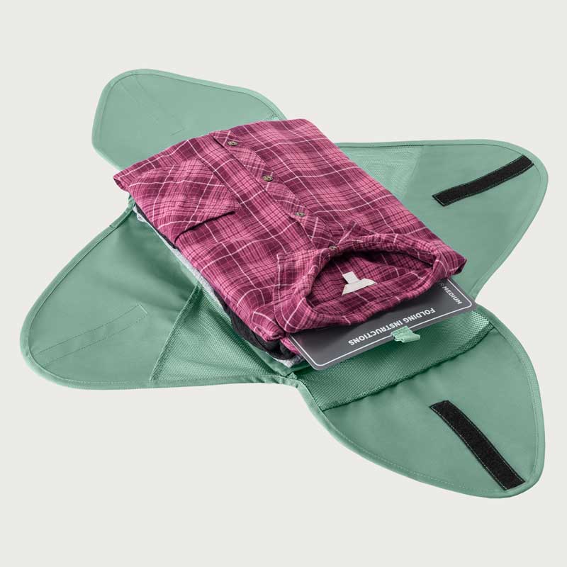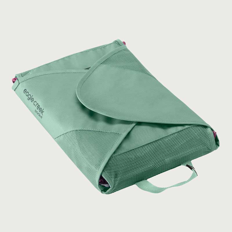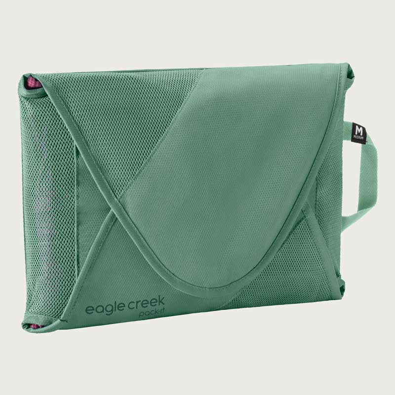 イーグルクリーク パックイット リウ゛ィール GMフォルダーMは、衣類をシワなく収納が可能です。付属の軽量折りたたみボードで衣類を畳み、面ファスナーで開閉できるのでパンツや襟付きシャツ、長袖トップスも圧縮できます。リサイクル・ポリエステル100%のシースルーメッシュで中身が一目瞭然。アイロン掛けが必要無く、イーグルクリークが開発した特別なPack-it™です。