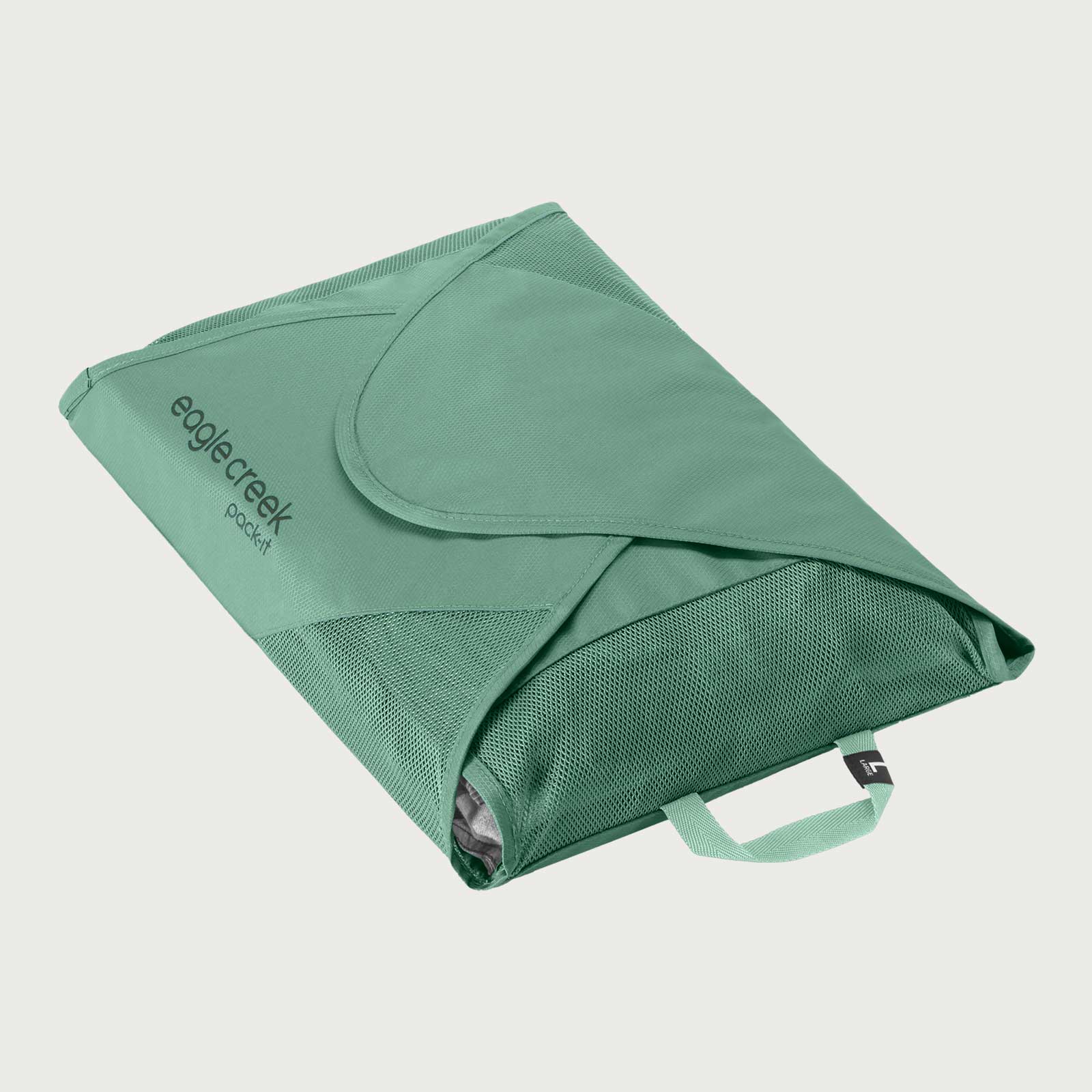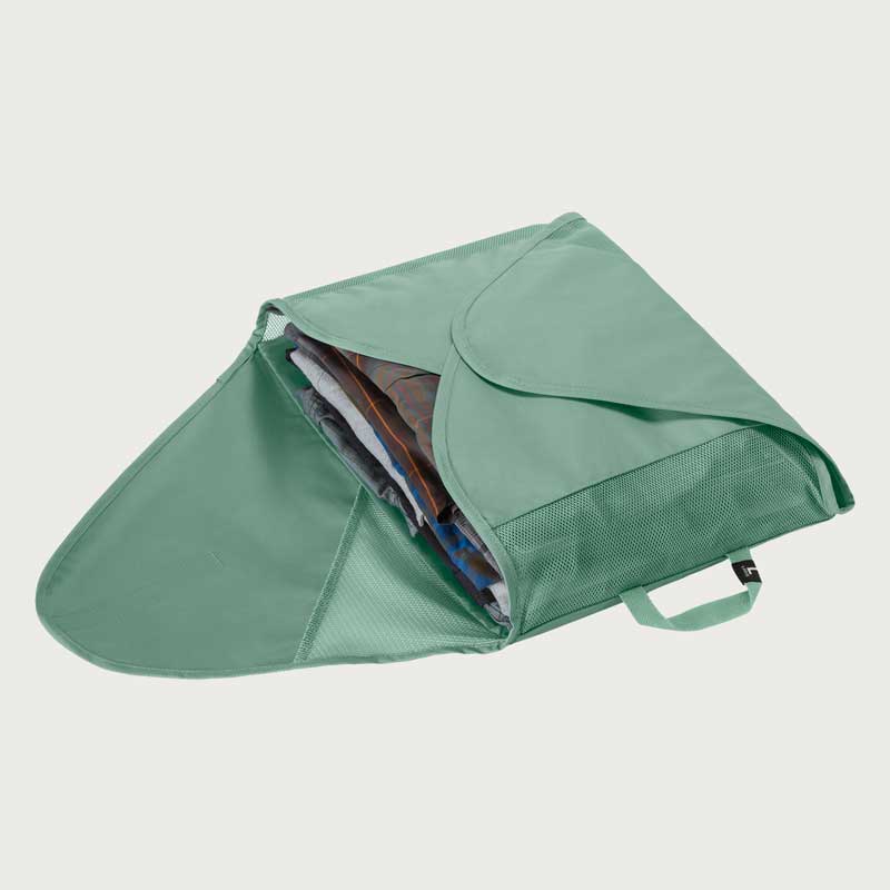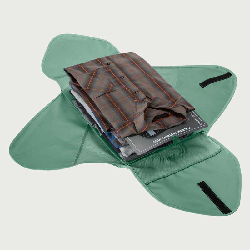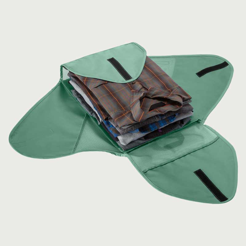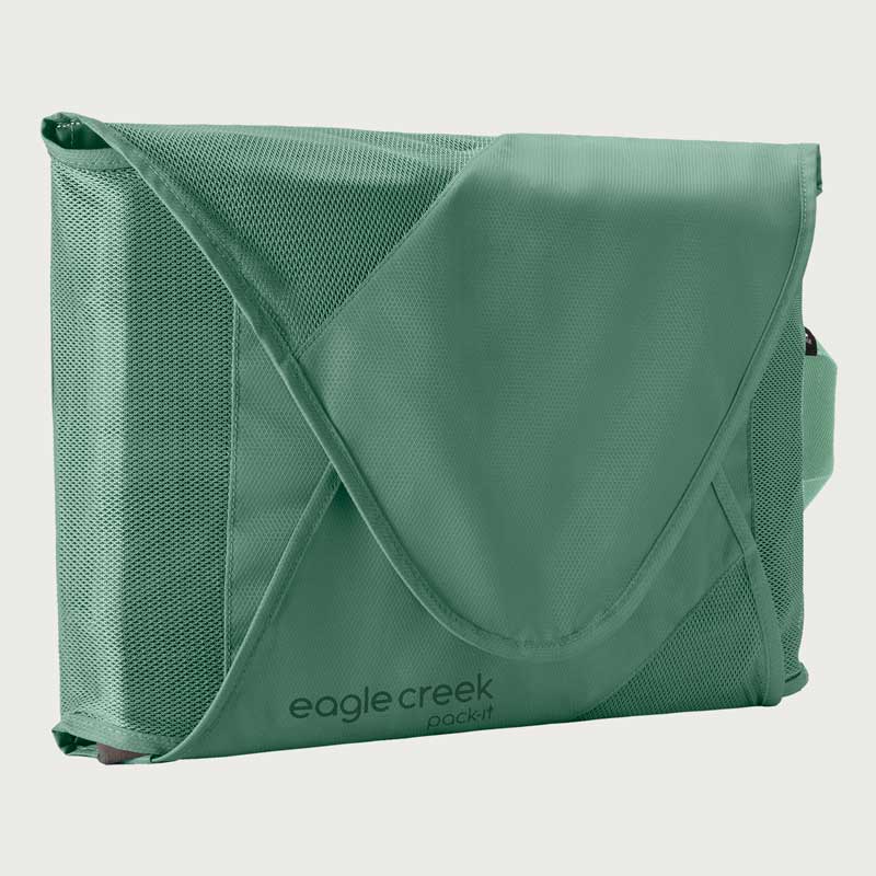 イーグルクリーク パックイット リウ゛ィール GMフォルダーLは、衣類をシワなく収納が可能です。付属の軽量折りたたみボードで衣類を畳み、面ファスナーで開閉できるのでパンツや襟付きシャツ、長袖トップスも圧縮できます。リサイクル・ポリエステル100%のシースルーメッシュで中身が一目瞭然。イーグルクリークが開発した特別なPack-it™です。