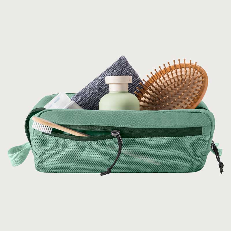 パックイット リウ゛ィール クイックトリップは100%リサイクル素材を使用し、耐水性を高めた、現代的トラベラーのためのどっぷキットです。外側のメッシュサイドのジッパーポケットには歯ブラシや小さなアクセサリーを収納でき、2つの構造コンパートメントのフルレングスのジッパーを開けると、中の中身が簡単に見えます。