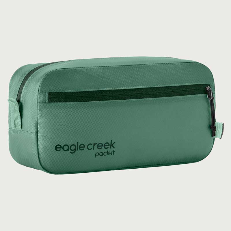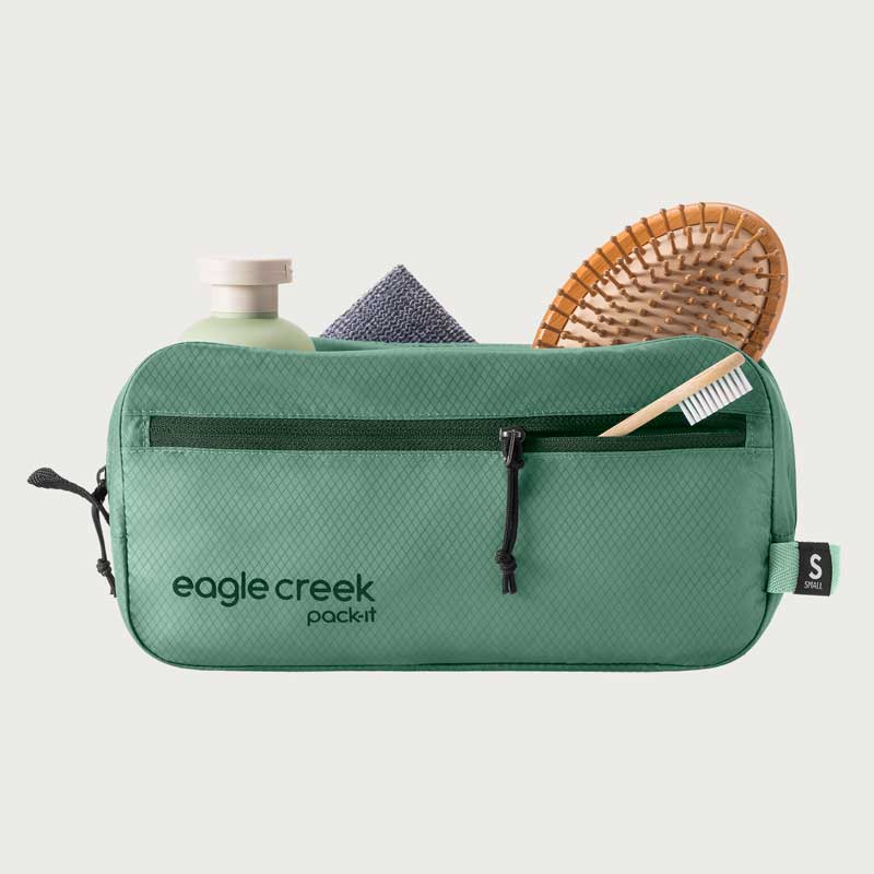 トイレタリー用品に最適化された軽量なパックイット アイソレート クイックトリップ Sは、ボトルやチューブに簡単にアクセスできるフルレングスのジッパーを備えています。ジッパー付きのサイドポケットには小さなアイテムを分けて入れることができ、このドップキットの耐水性生地は 100% 海洋リサイクル素材です。